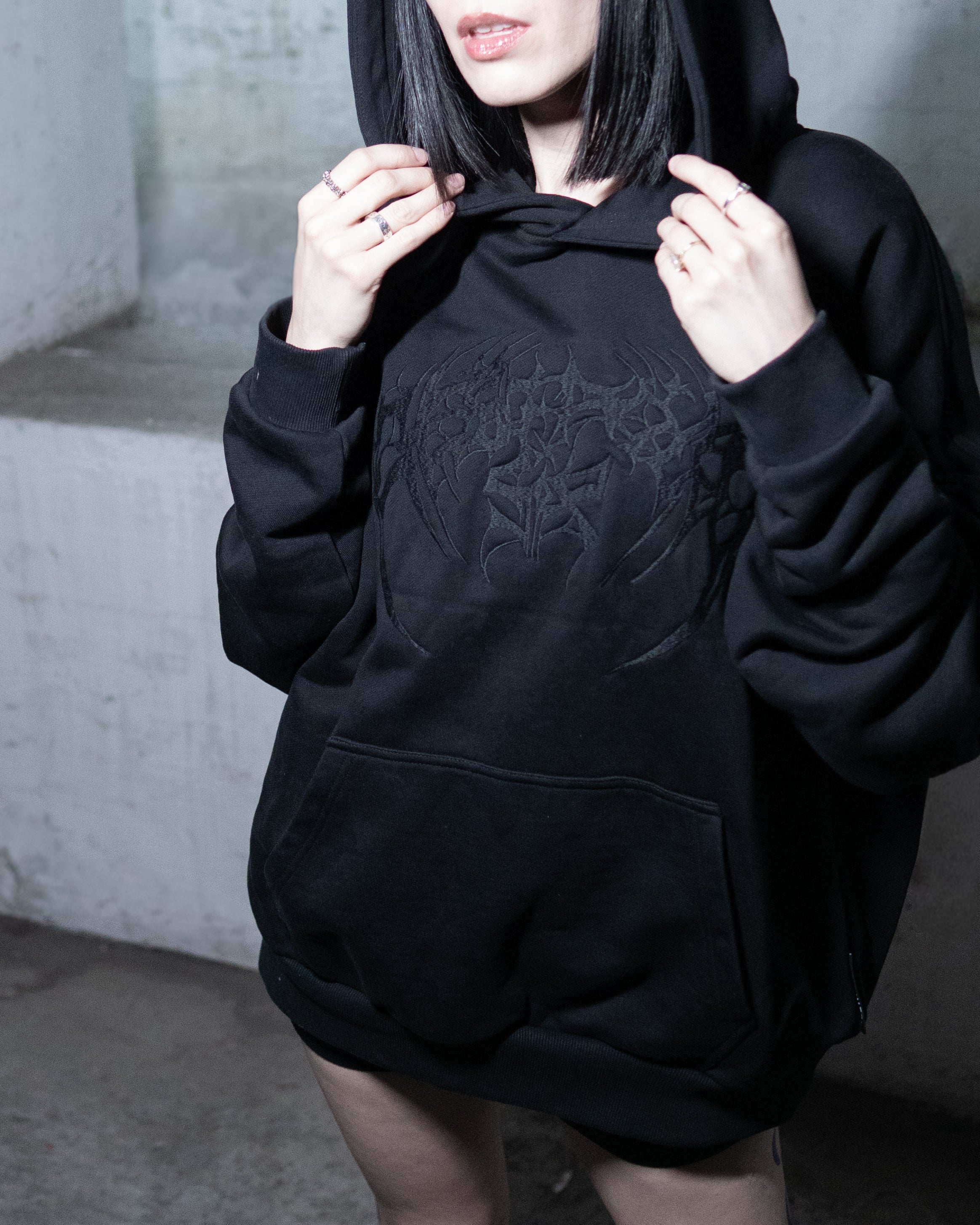BLACK-ON-BLACK SPIKE LOGO HOODIE